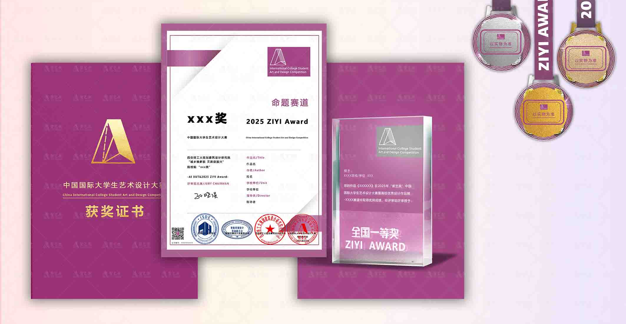 设计院&紫艺奖命题赛道-一等奖1位:建筑设计师/景观设计师/城市规划设计offer、工程类专业证书报考指导(价值2180元)、紫艺奖专属奖牌、奖杯、带壳纸质证书